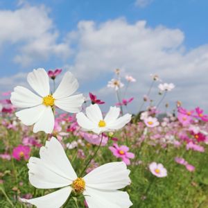 青い空に 白いコスモス揺れてるよー 気持ちのよい日
