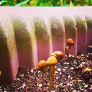 今日、庭で洗濯物干してたら放ったらかしのプランターの中に謎のキノコ発見🍄 ブラウンえのきみたいな感じの可愛いやつ🍄