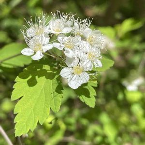 ちょっと長いこと悩んでいた花です。1400mほどの林で先月咲いてました。シモツケの仲間だと思うのですが、シモツケは葉っぱがもっと細長く、マルバシモツケは葉っぱがもっと円いし〜これはアイヅシモツケなのでしょうか?ご存知の方よろしくお願いします。5/27山梨県 7/8追伸 Ꮶ2さんよりアイヅシモツケとおしえていただきました。周りに見える葉は他の植物ではないかということです。ありがとうございました❣