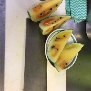 熟しきる前に本体の株が枯れてしまったスイカ でも結構甘みもあって青臭くもなくて普通に食べれるスイカになってた あまりにも中途半端な状態なのでこれが大玉なのか小玉なのか、 赤いスイカなのか黄色いスイカなのかよくわからなくなってしまいました カットフルーツで食べたスイカの種から育てたやつだと思うんだけどうろ覚えw