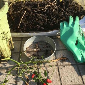 シシトウの根っこがほとんど無くなってた。真ん中の網に入れてるコガネムシ幼虫の仕業か、もしくは底面給水の鉢だったから過湿で根腐れしたのか、微妙なラインです この虫どもは鳥の餌じゃーw