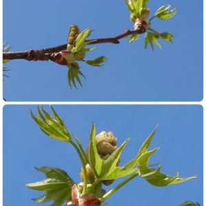 ( ゚▽゚)/コンニチハ 旅先で、初めて見る新芽と花芽?が、カワィィのでパシャリ! Σpω・´)📸 Googleレンズで調べる🔎と【モミジバフウ】って言うのに似てるなぁ🤔💭