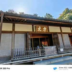 初冬の北鎌倉へ 円覚寺~明月院🍁❶ ①円覚寺の総門の紅葉を電車から見ると、この季節が来たなと実感します ②総門からの眺め 托鉢(たくはつ)に行かれる修行僧とすれ違う 青と朱色の相対美💙❤️ 門の下を横須賀線が走ります 実は円覚寺の境内の中を走っています ③雄大な山門 ここから空気が変わります ④仏殿の天井画「白龍の図」龍に逢えます ⑤素敵な八重の白いさざんかに出会いました まるで花器に生けてあるかのような構図でうっとりしました つづく