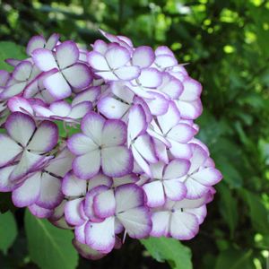 紫陽花「雨に唄えば」 白いフチの紫陽花。 雨が降ってもこの紫陽花を見ていると唄いたくなる、そんなイメージでしょうか^_^ 鎌倉 長谷寺にて。