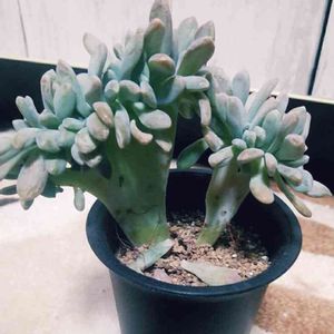 「どうしろって?!」第1弾。友達のママが事情があり植物の世話が困難に💧多肉を数種預かりました(半ば貰った的な)こんなとこから芽が出てる。徒長も徒長で胴長さんになってて。ちょん切るしかないな(><)
