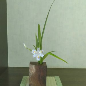 今日の庭から 今日のお花 シャガ 1)庭の花を生ける✊ シャガ 花器は先日、益子の陶器市で見つけました。 陶器ではありませんけど…😅 ウォールナットの中に試験管の様なガラスが仕込まれてます。 2)シャガのアップ
