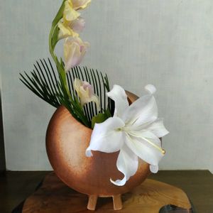 今日の庭から 1)庭の花を生ける✊ カサブランカが、たくさん咲いていまして、生けたいなぁ~と思っていたんですけど、ボリュームがあり過ぎて私の手に追えず、結局1輪に落ち着きました🤭 何しろカサブランカに合う花器が見つからず、ようやくこの変わった花器に落ち着きました。 グラジオラス モンァモールは植えっぱなし3年目なので、ちょっと小ぶりになってきました😅 蘇鉄の葉は、ご近所からいただきました😉 2)カサブランカ、連日の雨にやられてだいぶ傷んでしまいました😓