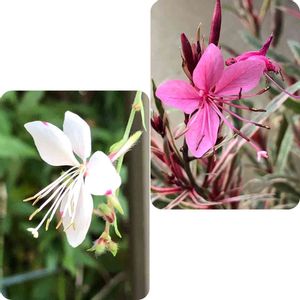 今年植え付けたガウラさん💠(白) 最近お迎えした斑入り種の レインボープチ🌸(ピンク) 秋には斑入りから赤葉になるそうです(*≧︎∀︎≦︎)∩︎〃ウヒャヒャ!!!!! 植物の成長は、子育て後の楽しみですねー(*'‐'*) ウフフフ♪︎