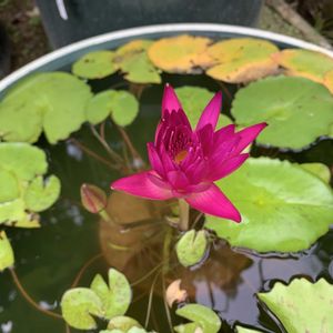 茶碗蓮の小舞妃🪷10番目が咲きました😀一天四海と合わせて6つ咲いてます😊熱帯スイレンのブルズアイは晴れたり曇ったりで花は今のところ開いてません😅キングオブサイアムは2つ水面に出てきました😀水面下には3つ見えてます😀