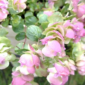 オレガノミルフィーユリーフ🤍🩷 切り戻しから約2ヶ月たち またまた可愛いお花をみることが出来ました🩷🩷🩷 ピンクに色づいた苞葉が可愛い╰(*´︶`*)╯ 大雨被害が少しでも軽くすみますように🙏