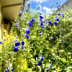 久しぶりのお天気☀️ 朝の陽射しに 大好きな青色の花が輝いてます コバルトセージ💙🍃 今年は花付きがイマイチだけど 風に揺れる繊細な雰囲気がたまらなく好き ヘブンリーブルー💙🩵🍃 ⑤寝室から見る自由気ままな後ろ姿が 特に好き🤭 空気が澄んで空が高い🟦 貴重な秋の1日 大切に過ごしたい