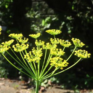 女郎花? ではなさそう。 近くの名札に「ウイキョウ(茴香)」とありました。 パチリ 茴香(ウイキョウ)は、セリ科の植物で、主に果実を乾燥させたものが生薬として使われ、 胃痛、腹痛、食欲不振、消化不良、むくみなどに用いられれるそうです。