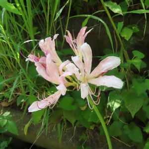 「ナツズイセン」? 花弁が傷んでいるけど、とりあえず パチリ Googleレンズで調べたところ、やはり「ナツズイセン」のようです。 「ナツズイセン」は全草、特に球根に毒を持つ有毒植物。 誤って食べると、嘔吐や痙攣、下痢などの症状を引き起こし、多量に摂取すると死に至る場合もあるとのことです。