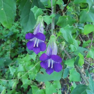 このお花、初めて見るお花では。 パチリ Googleレンズで調べたところ「アサリナ」のようです。 さらに「アサリナ」でNet検索したところ、葉のギザギザがほぼ無いことから 「アサリナ・バークレイアナ」と判明しました。🤗
