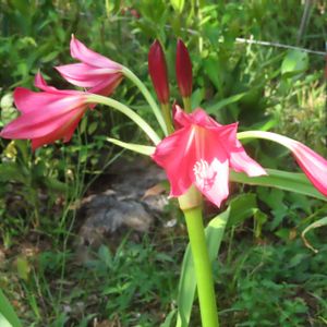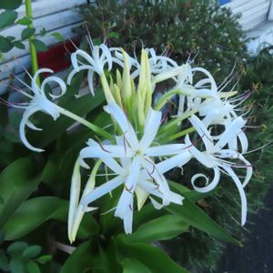歩道の植え込みに「ナツズイセン(夏水仙)」が満開に生っていました。 パチリ