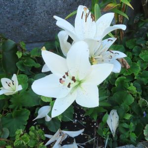 早朝散歩 6月上旬に見た「スカシユリ」に近い花姿。 なんだろう? Googleレンズで調べたところ「ニワシロユリ」に似ているようです。