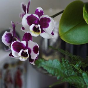 African violet💚💜 ようやく元々の色で咲くように。 背後のウニョウニョはバンダの根です。