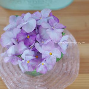本日3枚目です♪ 紫陽花みたいに飾ったビオラ💜 お天気が崩れる前の昨日、ビオラを切り戻ししました。 今朝、起きると暴風雨☔ 急いでお庭へ行くと数鉢が倒れていました💦 大事な大事なクレマチスの土が溢れて、 植え替えしたばかりのホヤがすっぽりと抜け出してるぅ❢ 昨日投稿した姫ライラックまでもが、 傾いていました(土こぼれ無しでホッ)… 全て枝が折れてなくて良かったです(´ω`٥) 昨日、ある程度は片付けておいたけれど、 置き方が完璧じゃなかったです( ´△`) 外は台風の時みたいな少し生温い空気。 これから暴風域に入る地域の方々、 くれぐれもお気を付けください〜(⁎˃ᆺ˂)