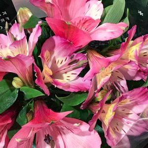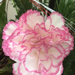 フラワーアレンジのカーネーションにズーム🤳🏻 縁がピンク💕カルメンのスカートみたい☺️