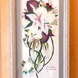 昨秋、娘の結婚に作った生花ブーケを押し花にしてもらったものです💕😊