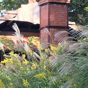 アメジストセージの波の中、セイタカアワダチソウがアクセントに顔を出してます😊