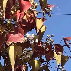 昨日は夕方から凄い風でした🌪 この前撮ったこの紅葉と白い実も落ちてしまったかも😞 なんていう木なんでしょう? 街路樹でこの時期、いつもこの実が気になってます🙂