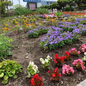 💕公園の花💕Part 1 午前中の散歩 直線コースだと 5.6分 アチコチ よそ様のお庭拝見しながら 1時間歩いてきました 花の名前は ? ベゴニア、マリーゴールド、シロタエギク、 💜 紫のモコモコ୧꒰*´꒳`*꒱૭は なんて言う花かな?
