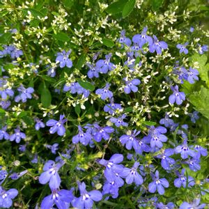 こんばんゎ(ॢ•ᴗ• ॢ) *:・゚✧ サントリーさんのロベリアアズーロコンパクト(スカイブルー)💙 7月13日の🆙後に2度目のピンチ✂から一ヶ月余り……💙 上は挿し芽ッ子💙 下が親株さん😍 どちらも同じくピンチ✂を…… また咲き始初めてブルーの小花が爽やかさを演出をしてくれてます💙