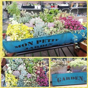オーダーしたyoumei3425さんのドラム缶鉢に寄せ植え(*^ω^*) ピーコックブルーに多肉ちゃんが映えてる(//∇//) 木製プレートも同じ色でプレゼント🎁してくれて、めちゃ嬉しい(✻´ν`✻) 今度は箱庭にも挑戦してみたいな♡