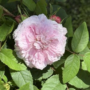 スヴニールドゥラマルメゾン 半横張りの小型の株に10㌢程の花。姿良し。💕 薄桃色の花は、パールがかったような、内からほんのり輝いている様な…しっとりした質感をかんじる。そこが大好き。💕 もう少し咲き進んだ方が、(私にとっての)ベストパール状態。 オールドローズの貫禄?落ち着いた佇まいが、静寂を感じさせるバラで、和風にも合いそう。 ☘個人的な知見です。😘