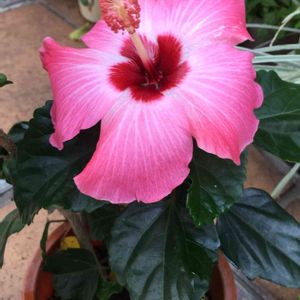今朝、ハイビスカス🌺のピンクが咲きました。昨日まで、蕾にも気がつかなかった。少し前に、見切り品で、来年用と書いてあり、180円で買ってきた鉢です。品種名もなく、来年咲いたらラッキーと思っていたら今年、こんな可愛い💕花が見られて🌸嬉しい😃です。