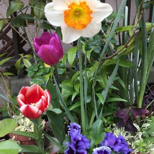 おとといまで真っ直ぐだった水仙の蕾が昨日直角に曲がり、今朝きれいに咲きました。これで球根の寄せ植え全部咲きました。強い風でサクラ🌸の花びらが散り始めています。花達が持ちますように。