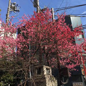 きれいなハナモモ、赤とピンクの二本かと思ったら1本の木でした。咲きわけかな。街中でも、こんなに大きくなるんですねー。^o^