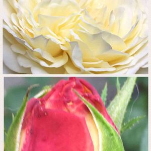 こんにちは😃 薔薇フリュイさん🌹🌹🌹 同じ枝先で咲いてる薔薇さんですが、蕾の時は、こんな風に赤みがありますが、咲いて行くうちに上のように殆ど赤みがなくなっていきます(╹◡╹)♡♡♡🎶