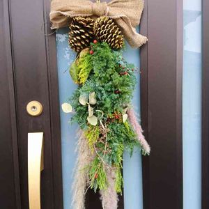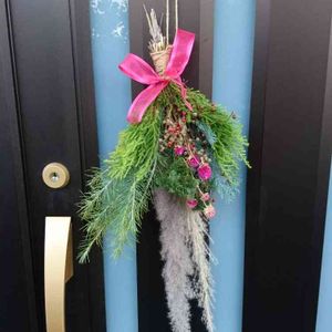 昨日もらってきた材料で 大きめのスワッグ作りました🎵(*゚▽゚)ノ 時間かかりましたが 楽しかったです(*^ー^)ノ♪