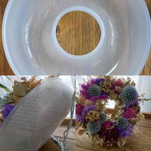 先ほどのドライフラワーのリース 実は 100均で お菓子作りの型を買い 英字新聞を張りオアシスを入れて ドライフラワー挿しました スタンドも針金で作りました お金かけてませんけど いい感じです(*^^*)