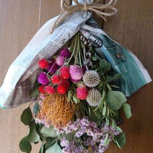 自作のドライフラワーを束ねました🎵😃🎵 ドライは 束ねるとポロポロ葉が落ちて 難しいです😅