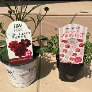 今晩ゎ 昨年ネットショッピングで注文してた チョコレートコスモス pwハクサン 届いたので天気になったら定植します。 一回の注文に4株、ポットというのは、 ちょっと💸、せめて、2ポットなら他のも買えて楽しいのにネッ🌼