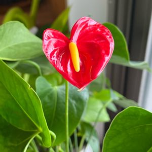 職場にて、やっと、ピカピカな赤い葉が出て来ました。可愛い❤️小さめですけど😂