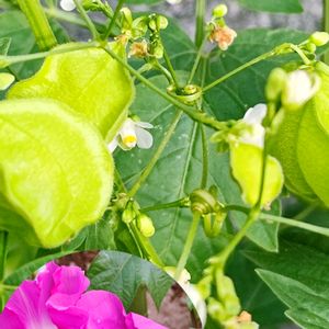 風船カズラと朝顔🎈⸒⸒💗 風船カズラ水が足りなさそう🥵💦 朝のうちしか見られない朝顔の花