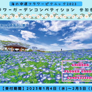 【海の中道フラワーピクニック2023 うみなかフラワーガーデンコンペティション参加者募集!】 海の中道海浜公園にあなたの造った花壇が展示されます! 昨年よりスタートした「うみなかフラワーガーデンコンペティション」が今年も開催されます。 春のにぎわう公園をイメージしながら、自由な発想でSDGsを考えた春の庭の花壇デザインを応募ください! デザイン審査に選ばれた花壇は、フラワーピクニック期間中、海の中道海浜公園に展示され、たくさんのお客様に楽しんで頂けます。 春の訪れとともににぎわう広い園内を舞台に、あなたの思い描く花壇を作ってみませんか。 興味のある方はぜひご応募ください! なお、このコンテスト優秀者は令和5年10月に開催予定の「一人一花フラワーガーデンチャンピオンシップ2023」に出場できます。 【場所】国営海の中道海浜公園「花桟敷横 花壇」 【受付期間】2023年1月4日(水)~2月5日(日) ※参加方法等の詳細は、受付後に海の中道管理センター事務局よりご案内します。 ※審査結果は2/17(金)頃に連絡予定 【応募資格】造園・ガーデニング・花に関係する企業・学校・団体 【展示期間】2023年3月18日(土)~5月21日(日) 「海の中道フラワーピクニック2023うみなかフラワーガーデンコンペティション」の応募方法等、詳細はこちらから♪ URL:https://uminaka-park.jp/news/info/post_84.html