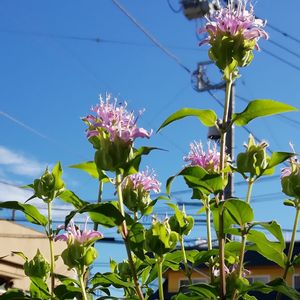 朝散歩で出逢いました♥️ 青空に映えて可愛い花🎶 🌿🌺ヤグルマハッカ🌺🌿