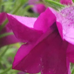 💜ペチュニア 今日のお花より ナス科 ペチュニア属 別名:ツクハネアサガオ 垂れ下がるものやこんもり茂るもの、大輪~小輪、八重咲きなど色々な園芸品種があります 葉に細かい毛があり、ベタつきますがこのベタつきは病害虫から身を守ることに役立っているそうです 今日のお花と、知り、今庭のお花を撮影して来ましたが、朝からの☔で花弁が重そうですね