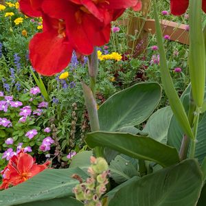 今日のお花❤️🧡💛カンナ🌿 カンナ科 カンナ属(ダンドク属) 原産地 熱帯アメリカ 別名 美人蕉、ハナカンダ、ハナカンナ、オランダダンドク 1️⃣2️⃣3️⃣南の花壇で、情熱的な赤が夏らしいです 8月頃全盛期で、赤はまだ少し咲いています オレンジの花は銅葉でした 4️⃣近所の道端で 二輪咲いたら又撮ろうと思っていたら、除草中の看板がありもう無くなっていました😩 5️⃣カンナ.ダーバン 葉の色が、緑色、黄色、橙色で構成されていて、葉全体がほんのり橙色を帯びている 葉脈に沿い、黄色い脈班が入る 花はオレンジ色 トロピカルな雰囲気です 花より葉が魅力的
