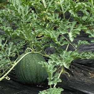 児玉スイカ🍉 バス停まで続く古民家の一角の畑で 見た光景 通り過ぎたけど後戻りして📸 撮りました🍉 雨続きでどんどん大きくなりそうですね 通るのが楽しみ🎶