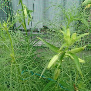 お正月に食べそびれたユリネ。 ズボラですみません。 捨てるか~と中を見たら芽(先端が盛り上がってて)ビックリ。 好奇心からコスモス(シェル)の鉢に植え込んでみました。 (鉢が増えるので💦) いつの間にか蕾が!! 植えたのは一塊です。2枝成長にもビックリ。 色々お花を育ててみるものですね~。