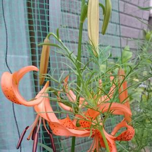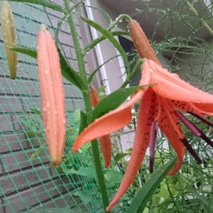 おはようございます。 やっとユリネ咲きました。 蕾も結構あるし、長く楽しめそう。(雨続くだけど)