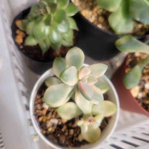 ハウス内は30℃軽くこえてましたが 今日は気持ちの良いお天気ですね☀️ この子は単独では光合成できなそうなので、親株に付けっぱなし🐤♥️