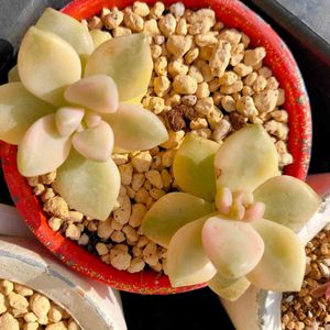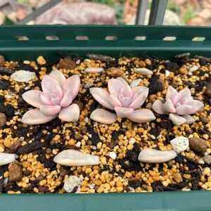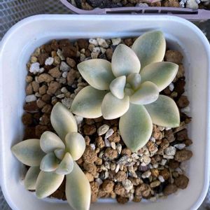 アプリコット美人ですが、葉挿しをしてはいけないと言われている品種です。 葉挿しをしたら、下の様になり、育成していたら、右上の様な形状になりました。白い方は枯れちゃうかも知れませんが。 増やしたい時は、挿し木で増やしましょう。(*^^*)
