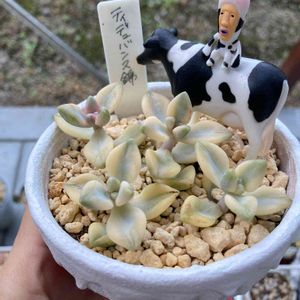 🏷錦の日🏷牛の日に参加します❣️ ⬆️ユーフォルビアゴールデンレインボー 3年目にして夏の長雨で消えてしまったので 昨日お迎えしました😅 ↙️プミラの中にティチュバンス錦(別名アプリコット美人)さん ↘️牛さん鉢にセダムちまちま 何度も倒れてセダム何処かへ行ってしまい またあちこちからかき集めました💦